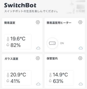 温度管理には温度計が必須です、湿度計付の温度計を購入し寒くなりすぎないようにしましょう。 湿度や風の管理も必要になってくるので連係動作のできるSwitchBot 温湿度計が最適です。 SwitchBotで温度計とヒーターを連携させれば温度が下がりすぎたときに自動的に加温をすることができます。